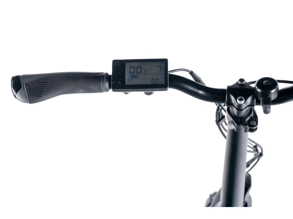 Na LCD displeji můžete sledovat aktuální, maximální a průměrnou rychlost, ujeté kilometry a stav nabití baterie. Displej nabízí denní a noční režim podsvícení.