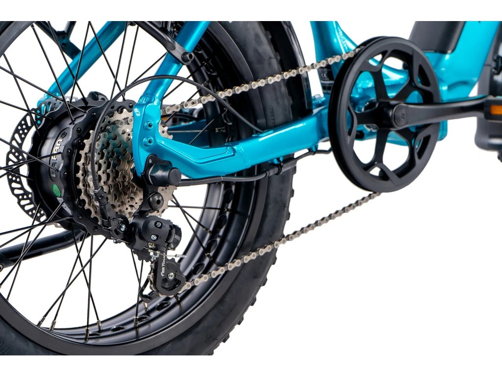 Zadní motor Bafang se vyznačuje plynulým a tichým chodem, nabízí nominální výkon 250W a maximální výkon 350W s kroutícím momentem 80 Nm, ideálním pro jízdu ve městě.