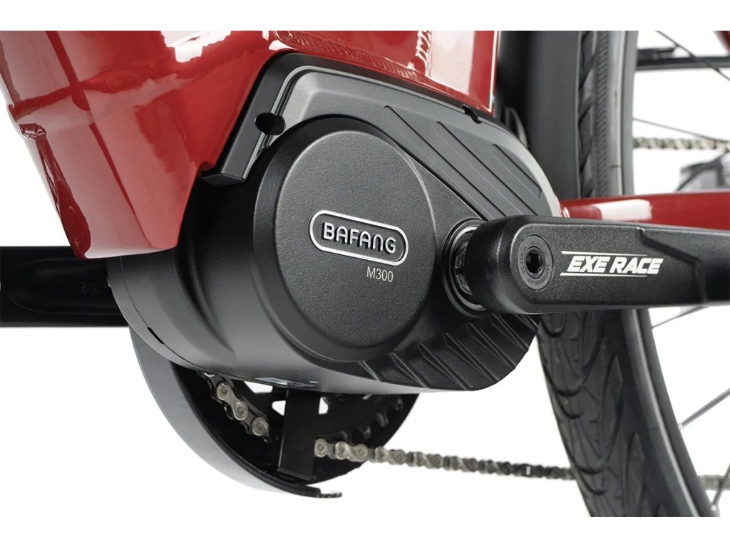 Motor Bafang M300 je oblíbený středový pohon s nominálním výkonem 250 W, maximálním výkonem 350 W a kroutícím momentem až 80 Nm. Integrovaný snímač otáček zajišťuje hladkou jízdu bez námahy. Možnost doplnění o snímač řazení (Gear senzor) umožňuje snadné a rychlé změny rychlostí.